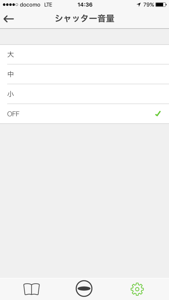 THETAとWi-Fiで接続した状態で設定を開くと「シャッター音量」と言う項目が追加されました。