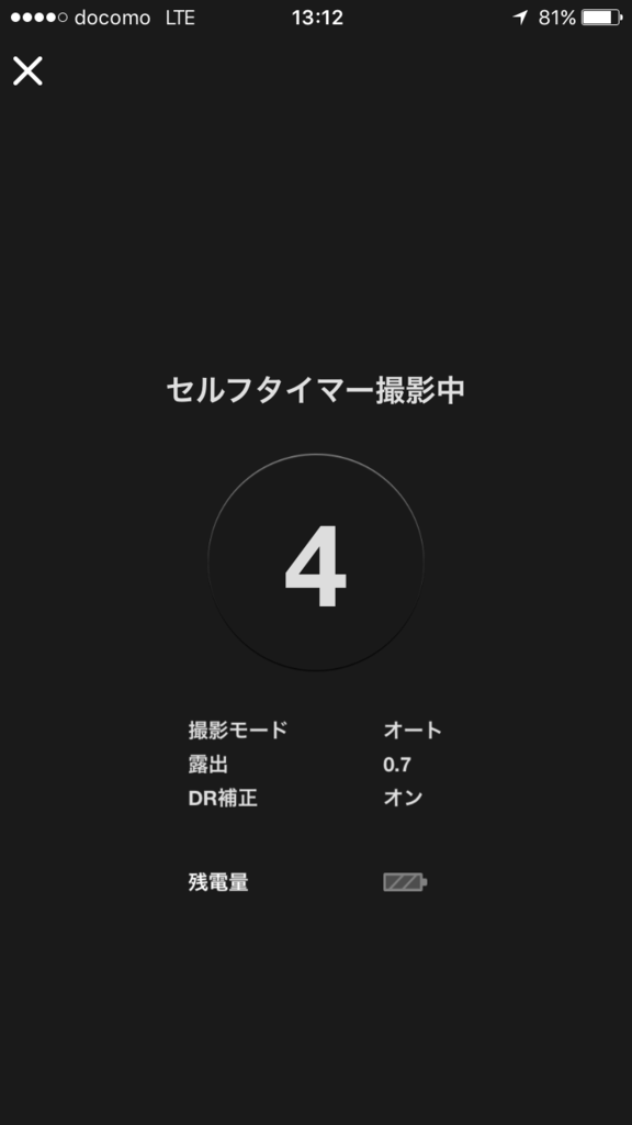 スマホからシャッターを切ると、画面にはカウントダウンが表示されます。